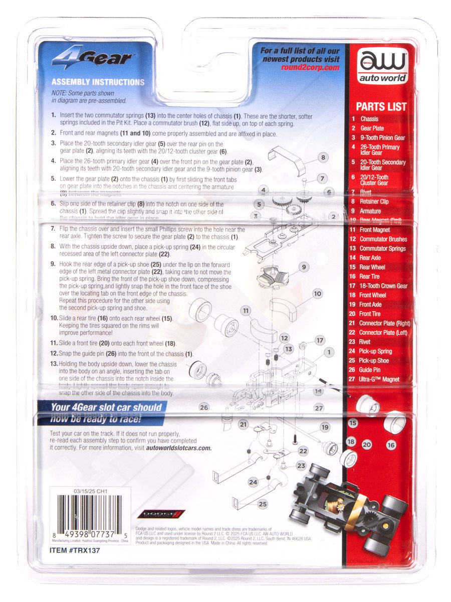 Auto World 4 Gear Deluxe Pit Kit (2022 Dodge Charger Funny Car) HO Scale Slot Car